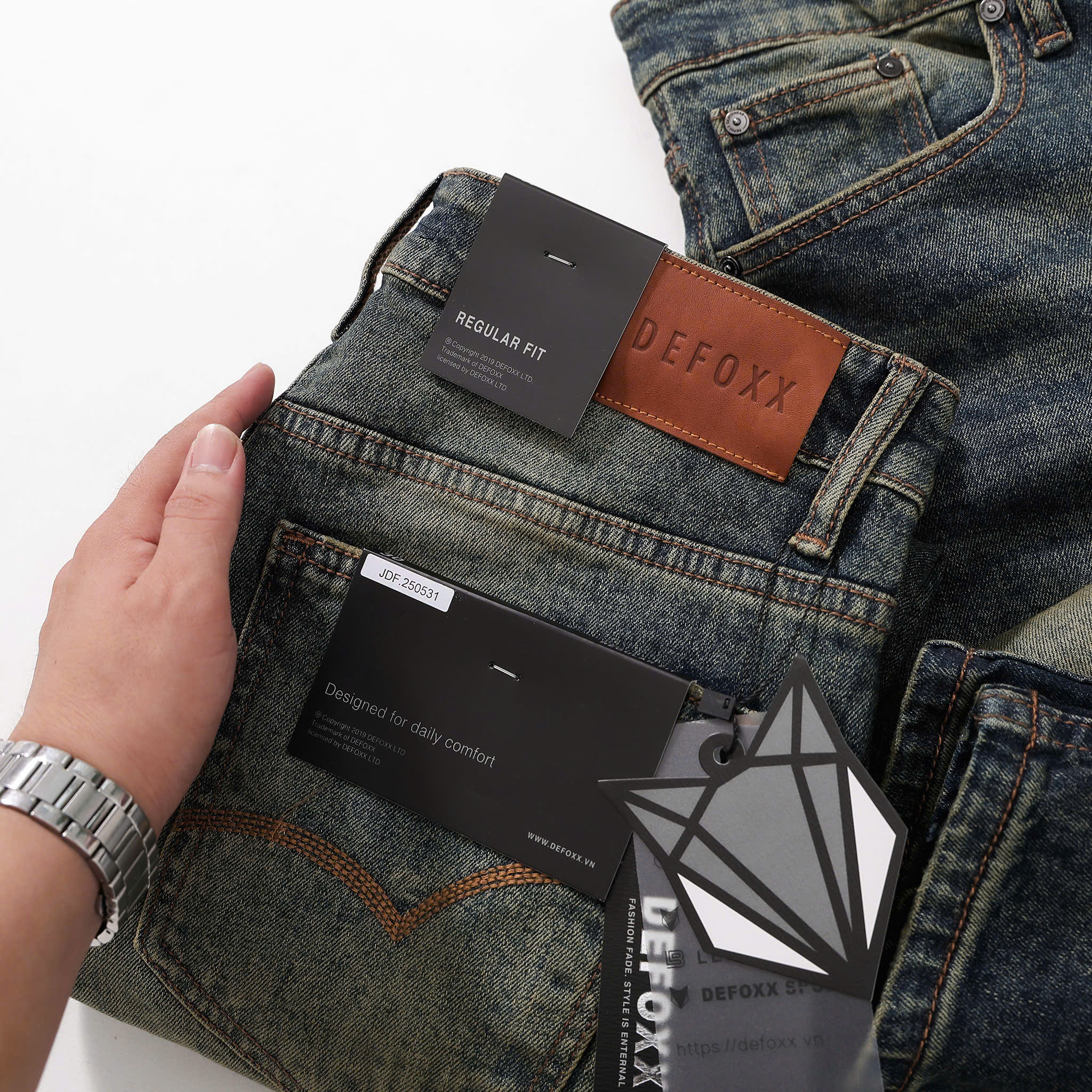 - Jean DEFOXX hiệu ứng wash trẻ trung, dễ mặc, dễ phối đồ.