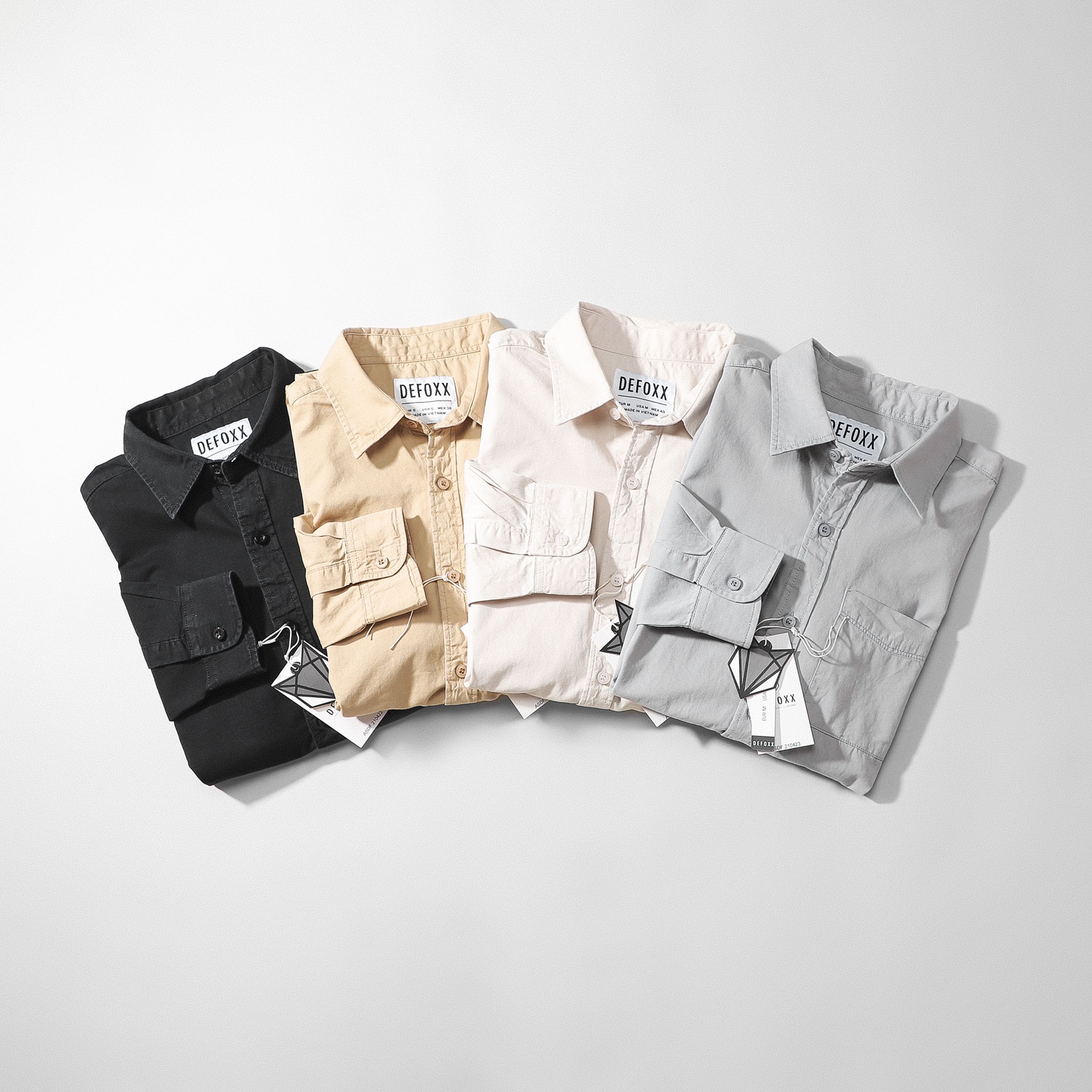 - Áo SM DEFOXX có túi 4 màu: Đen, Xám, Be Vàng, Kem